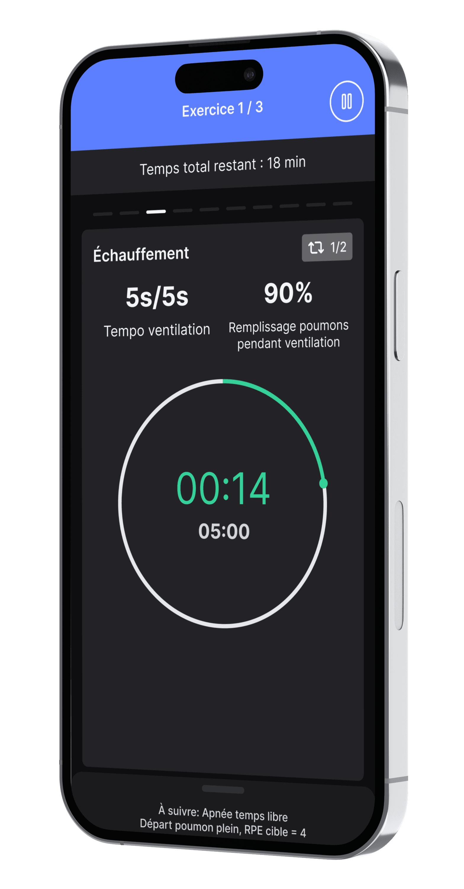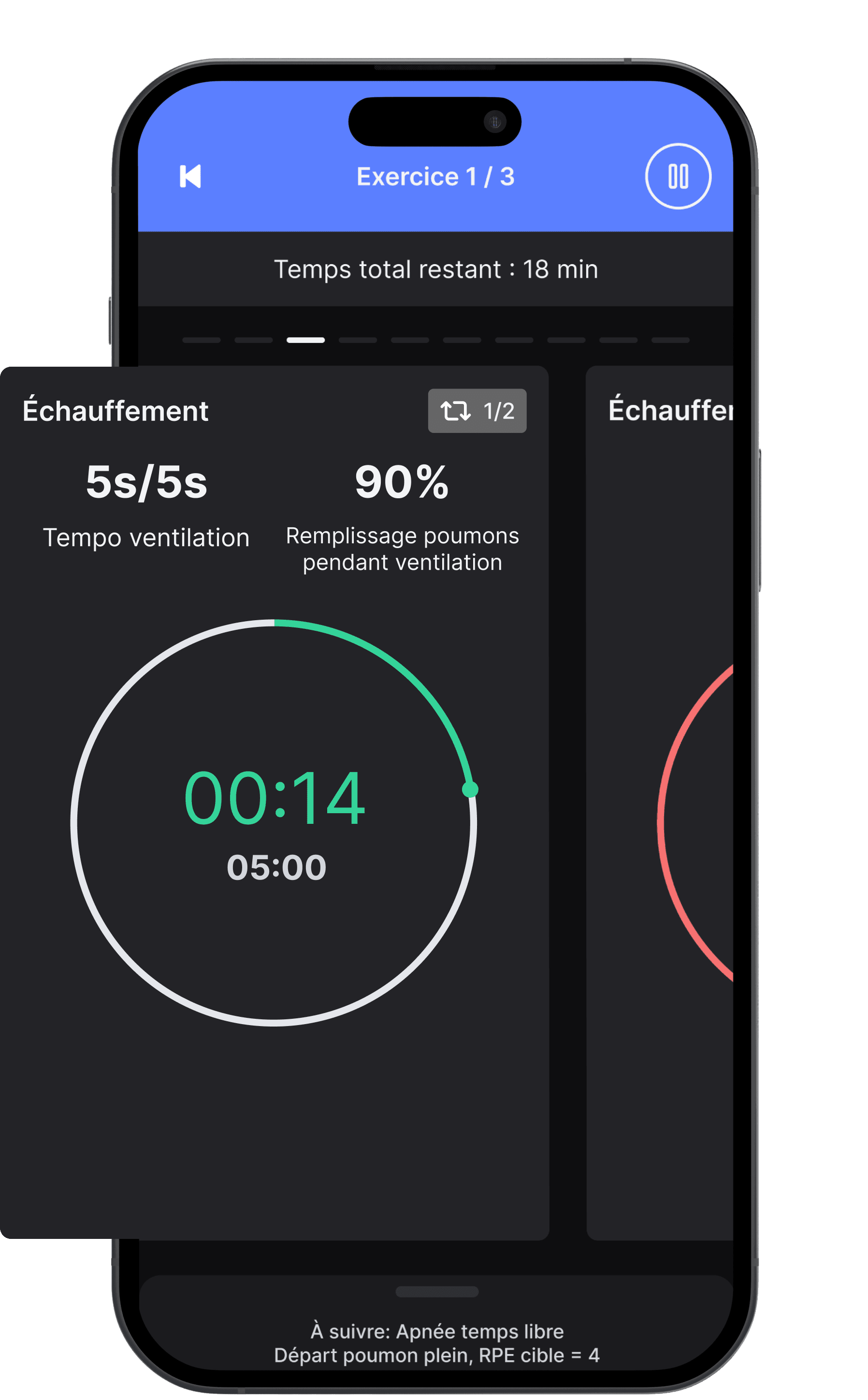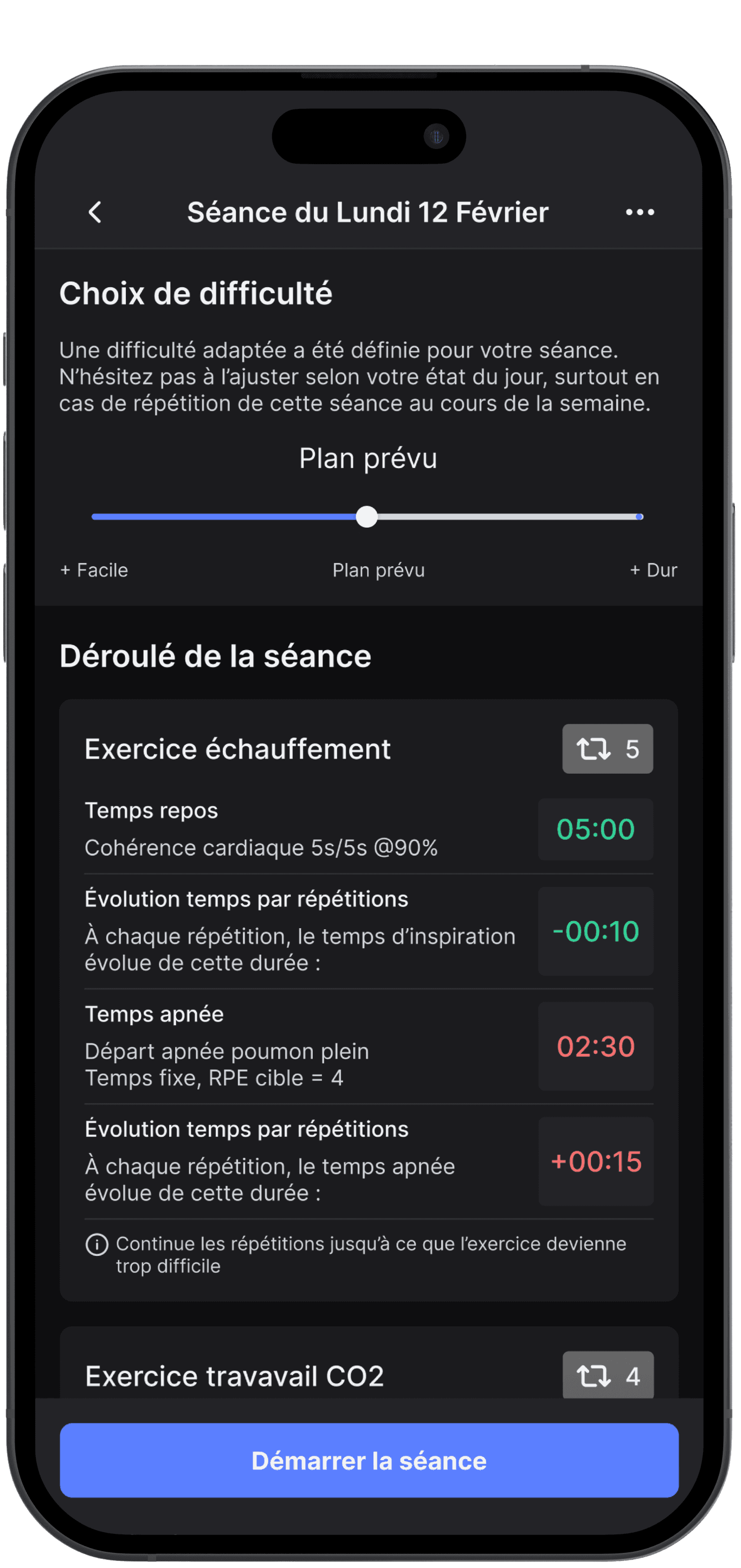 Création de séances d’apnée statique personnalisées (jusqu’à 25)